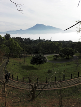 圖片9, 2016年3月5日,第9次臺(tái)北公園徒步,在淡水河北岸的扈尾炮臺(tái)附近拍攝,從海上漂來(lái)的白霧完全籠罩住了整個(gè)淡水河面,對(duì)面是觀音山。近景蒼翠如國(guó)畫(huà), 遠(yuǎn)景飄渺若仙境,虛實(shí)相映,意境幽遠(yuǎn),是我在臺(tái)灣看到的印象最深刻的風(fēng)景之一。(朱效民攝影)