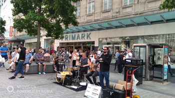 謝菲爾德 曼城到謝菲爾德也是約一個小時的車程,往返車費約24鎊,處于曼城的東部。火車沿途兩側(cè)不同于去往利物浦的路上,空間開闊,綠地、農(nóng)地、牛羊、馬匹都很悠閑;小城、農(nóng)家看上去都安然自在,多個小站都有游者背著行囊成群結(jié)隊地下車,去爬山、去郊游、去徒步旅行、去呼吸新鮮空氣……路過至少路過兩個河道,見有人仍以傳統(tǒng)人工方式開閉閘門,古樸且自然。很有趣! 謝菲爾德火車站是一個老建筑,規(guī)模挺大。站前區(qū)比較安靜,來往的旅客不是很多,我選擇了一條路并沒有什么人,安靜得很,人少、車也少。走了一些時辰,居然走到了一條商業(yè)街,人比較多,分不出來當(dāng)?shù)厝诉€是外地人,但是未見中國游客,倒是遇見幾個中國留學(xué)生。一群學(xué)生手持彩色氣球有節(jié)奏地舞蹈著,像是一個什么活動!?我倒是被一陣充滿激情的音樂所吸引,趕過去一看,一個四人樂隊正在街頭演唱,許多人圍觀,且送去陣陣掌聲。一個打架子鼓、一個吉他、一個貝斯、一位歌者。這位歌者的聲音很像中國歌手楊坤的聲音,獨特而深沉,十分打動人心。在他停下來的時候,他鼓勵大家買他的唱碟,10英鎊,并誓言:“你們在支持未來的No.1”。觀看者紛紛購買,我也買了一張碟,并請四位簽名,與他們合影留念!喔塞,我成了粉絲了!好聽的音樂真有感染力。