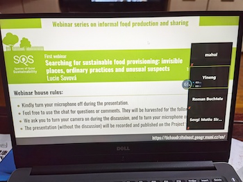 作為“悄然的可持續(xù)發(fā)展”項(xiàng)目一部分,捷克科學(xué)院民族學(xué)研究所組織關(guān)于“自產(chǎn)食蔬”的系列講座于2020年12月2日格林尼治標(biāo)準(zhǔn)時(shí)間下午1:30(北京時(shí)間:2130)通過(guò)網(wǎng)絡(luò)會(huì)議開始啟動(dòng)。 第一個(gè)講座由荷蘭瓦赫寧根大學(xué)(Wageningen University)露西·索沃娃博士 (Lucie Sovová) 主講,主題:“尋找可持續(xù)食品供給:無(wú)形的地方、平凡的踐行與不同尋常的想象”( “Searching for sustainable food provisioning: invisible places, ordinary practices and unusual suspects”)。
