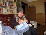 (照片說明:左圖,我母親晚年給我縫補(bǔ)破了的舊被單;右圖是母親年輕時(shí)的照片)