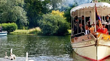 鑒于中世紀(jì)訂定的法律,英女王伊麗莎白二世擁有全英格蘭與威爾斯未注明主人的天鵝。畫(huà)面中女王和他的臣子們正在進(jìn)行「清點(diǎn)女王的天鵝」活動(dòng)。(2009年,此照片選自騰訊網(wǎng)) |