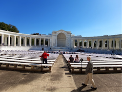 (左圖是毗鄰國會大廈的“國家大法院”門外場景;右圖是從國會大廈通往白宮路上的“攤販車”) 值得一說的阿靈頓國家公墓,在莊嚴(yán)肅穆靜謐中銘記了為“美國夢”獻身的各路英豪與將領(lǐng),更有數(shù)千名無名英雄安葬于此。這是華盛頓最著名的景點之一,從入口到出口、游覽線路、門票價格等等都設(shè)計合理,體現(xiàn)出對愛的傳遞和精神啟蒙的服務(wù)宗旨。游客雖多,素養(yǎng)卻普遍高,秩序也井然。因錯過我乘坐的游覽車,打算搭乘一個旅行團專車,不知可否?向?qū)в握f明情況后,她熱情地請我入座,并贈與一朵精致的“罌粟花”,免費享受了旅行團的待遇。“佩戴罌粟花”向犧牲者致敬是西方近代文化傳統(tǒng)之一。旅游業(yè)的本質(zhì)屬性在于“傳遞愛”和“精神品質(zhì)”,如此,旅游業(yè)才能長盛不衰。在這兒,我感受到了。