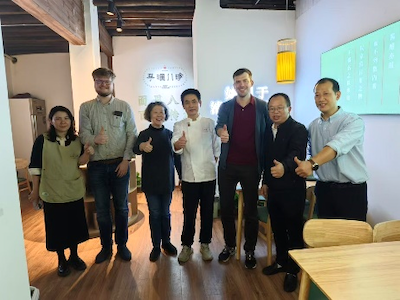 (八珍面館內(nèi),中間穿白色衣服者為美食傳承人) “李漁稻米”,既生長(zhǎng)新品種水稻,水稻內(nèi)也養(yǎng)殖螃蟹;稻米脫下的米殼既可以制作飼料,也可以做深加工的原材料,古鎮(zhèn)的循環(huán)經(jīng)濟(jì)讓人刮目相看。難怪馬力說(shuō),中國(guó)古樸的自然觀延續(xù)至今,用實(shí)際行動(dòng)加入了人類(lèi)可持續(xù)發(fā)展戰(zhàn)略的大目標(biāo)中。貝皓陽(yáng)在感動(dòng)中亮嗓唱了一首挪威民歌,產(chǎn)生了文化共情與共振。