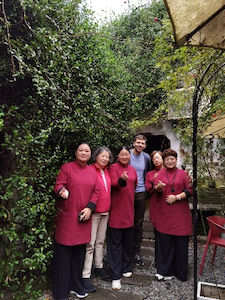 (朱紅主任右二與大家合影) 兩位挪威學(xué)者大開(kāi)眼界,古村落、美食和各種手工藝品尤其吸引他們。跨文化研究視角讓他們對(duì)多元文化價(jià)值的理解、認(rèn)同,以及美的欣賞有了更實(shí)在的“現(xiàn)場(chǎng)”收獲。他們表示,將來(lái)會(huì)帶領(lǐng)他們的家人或鼓勵(lì)更多的歐洲人到蘭溪古鎮(zhèn)看一看。他們還對(duì)游客群體消費(fèi)傾向做了觀察。 在兩天的田野考察中,我們也特別關(guān)注了村民“菜園子”的種植情況,以及民風(fēng)中的勤勞節(jié)儉的習(xí)尚與傳統(tǒng)。