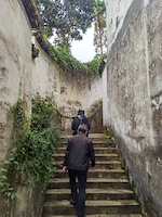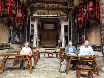 (相遇的研習(xí)團(tuán)部分成員) 不論是游埠鎮(zhèn)還是諸葛村,古人設(shè)計(jì)的“排水道”,讓我們?cè)俅晤I(lǐng)略了農(nóng)耕文明中的生活智慧與宜居生態(tài)文明的范例,可以說(shuō),具有不得不被征服的文化魅力。 諸葛村的祠堂大多保護(hù)完好,我們拜遏了“大公堂”,吟誦了“誡子書(shū)”——“夫君子之行,靜以修身,儉以養(yǎng)德。非淡泊無(wú)以明志,非寧?kù)o無(wú)以致遠(yuǎn)。夫?qū)W須靜也,才須學(xué)也,非學(xué)無(wú)以廣才,非志無(wú)以成學(xué)……”兩位挪威學(xué)者心靈受到了習(xí)禮,并希望將“靜以修身,儉以養(yǎng)德”作為座右銘。坐在講堂的課桌前要 “當(dāng)諸葛亮的現(xiàn)代學(xué)生”(貝皓陽(yáng)語(yǔ))。中國(guó)文化的精髓就這樣輕而易舉地熏襲了老外。 (穿越在諸葛亮“誡子書(shū)”中,做諸葛亮現(xiàn)代的學(xué)生) 這時(shí)不僅讓我們想起那句“越是民族的,越是世界的”箴言,“有地方色彩的,倒容易成為世界的,即為別國(guó)所注意。打出世界去,即于中國(guó)之活動(dòng)有利”(魯迅)。在源遠(yuǎn)流長(zhǎng)歷史中積淀的充滿智慧的煙火氣,洋溢古人自然觀的市井生活氛圍,讓人在駐足中增添了責(zé)任與力量。 李漁,明末清初文學(xué)家、戲劇家、戲劇理論家、美食家,亦被稱(chēng)為“幫閑文人”,是蘭溪史上最靚麗的文化名片,在過(guò)去的四百余年間滋養(yǎng)了這片大地。尤以《閑情偶寄》中留下的飲食文化、飲食技藝、飲食倫理,以及他親手耕耘的“芥子園”成為中國(guó)文化史上獨(dú)樹(shù)一幟的文化坐標(biāo)。我們遇見(jiàn)一輛滿載四十余位義烏作家代表團(tuán)的大巴車(chē)到“芥子園”采風(fēng)。蘭溪市政協(xié)副主席陳興兵,同時(shí)任“蘭溪李漁文化賦能工程指揮長(zhǎng)”,他長(zhǎng)期研究李漁和李漁文化,對(duì)李漁如數(shù)家珍,他的講解傾倒了大批游客。這樣的指揮長(zhǎng)如何賦能新蘭溪,是時(shí)代給他的新考題。