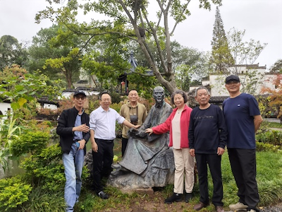 (陳興兵左二與義烏作家代表團(tuán)成員合影于李漁雕像旁) 我們?cè)诳疾扉g也即興地提出一些建議: 其一,在我們接觸到的各級(jí)地方干部中,看到他們都年富力強(qiáng)、思想活躍、積極進(jìn)取、勤于思索、愛(ài)崗敬業(yè),浸透了對(duì)家鄉(xiāng)的愛(ài)。可以放手讓他們?cè)谑嘏f不復(fù)舊中創(chuàng)造和發(fā)揮新思想、新路徑、新業(yè)態(tài)。可以做差異化的管理和指導(dǎo)。 其二,絕對(duì)避免“同質(zhì)化”的產(chǎn)品生產(chǎn),鼓勵(lì)各美其美,呈現(xiàn)不同美的生態(tài)、神態(tài)、業(yè)態(tài)、情態(tài)和儀態(tài)。既傳承固有的優(yōu)秀文化傳統(tǒng),也要適應(yīng)人民大眾新的精神需求的產(chǎn)品。傳承,但不要守舊;迎新,但不要迎合(低級(jí)趣味);發(fā)展,但不要破壞文脈。 其三,李漁文化的精髓在于閑適而淡然,以此留下豐厚的文化遺產(chǎn),至今受用。從這個(gè)意義上講,李漁是當(dāng)代休閑文化與經(jīng)濟(jì)共進(jìn)的先師。沒(méi)有文化的旅游不會(huì)走的長(zhǎng)遠(yuǎn)。因此,切忌急功近利,淺嘗輒止。 其四,歷來(lái)地方的事情千頭萬(wàn)緒,也常常會(huì)讓事務(wù)陷入錯(cuò)綜復(fù)雜之中,因而眾說(shuō)紛紜,失去共識(shí)。此種情況下千萬(wàn)不要東施效顰,隨波逐流。另外,如何處理好各方利益,特別是村民的利益和實(shí)際困難最考驗(yàn)政績(jī)。 其五,引入“文化公司運(yùn)營(yíng)”固然是一個(gè)路徑,但是一定是與當(dāng)?shù)匚幕两蝗冢袆?chuàng)意、有新意、有美意、有善意、有滿意、有情義。賺錢(qián)是資本的目標(biāo)與目的,而文化精髓的保留責(zé)任也必須擔(dān)負(fù)得起。 其六,想干事、能干事、干成事和干好事,它們相互依存。“干好事”的衡量標(biāo)準(zhǔn)在哪里?做到心中有數(shù)。老祖宗留下了兩千年的瑰寶,無(wú)論是有形的還是無(wú)形的都是蘭溪之魂。去粗取精、去偽存真的責(zé)任重大。 其七,村鎮(zhèn)構(gòu)成了中國(guó)巨大的版圖,是中國(guó)文化根源性的存在,在城鄉(xiāng)融合中仍有獨(dú)到價(jià)值。其發(fā)展同樣與整個(gè)國(guó)家,乃至于世界發(fā)展相輔相成。如今整個(gè)人類(lèi)面臨各種危機(jī)與挑戰(zhàn),諸如:氣候變化,突起的不確定性(甚至是不可預(yù)知性),戰(zhàn)爭(zhēng)風(fēng)險(xiǎn),全球消費(fèi)降級(jí),技術(shù)介入,人性異化等等因素對(duì)我們謀篇布局都有深刻的影響。此時(shí)的發(fā)展理念和行動(dòng)更要“大膽假設(shè),小心求證”。危機(jī)、轉(zhuǎn)機(jī)、天機(jī)和神機(jī)都是在相互轉(zhuǎn)化之中,人算、天算、神算和妙算疊加而成運(yùn)。 朱紅主任曾長(zhǎng)期任職于金華,對(duì)整個(gè)情況了然于心,“風(fēng)雨兼程、穩(wěn)中求進(jìn),不搞‘翻盤(pán)子’項(xiàng)目”的建議可謂意味深遠(yuǎn)、企盼殷殷。