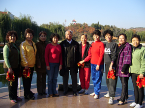 李夢(mèng)華在裁判長(zhǎng)的指導(dǎo)下體驗(yàn)國(guó)際規(guī)則 | 李夢(mèng)華在金海湖畔散步 |